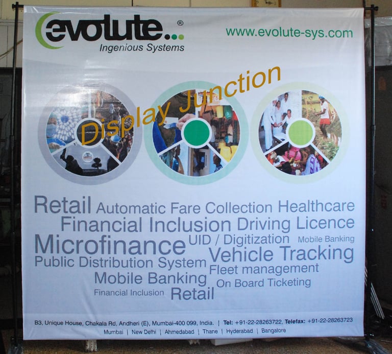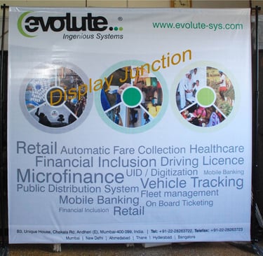 You can utilize solvent flex, eco-solvent flex, or Poly Cloth ink-jet printing for this banner stand. The advantage of Poly Cloth transfer printing is that it is crease-resistant and offers a flat print since no lamination is applied. In contrast, all other types of media tend to curl.