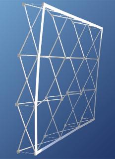 Flex or Fabric popup is we produce is made using annodised Aluminum pipes, heavy duty industria plstic locking arms, high quality plastic hubs and durble Hook N Loop Tape backed with basket material to provide support and long life to the product.