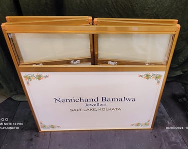 Introducing our versatile 36" wide, 36" high, and 18" deep rectangular jewellery showcase table, thoughtfully designed for both portability and functionality. This unique folding counter merges convenience with style, making it the perfect addition to any display setting, whether for trade shows, retail environments, or special events. Weighs just 32 KG. with all glasses are Toughened / Hardened.
