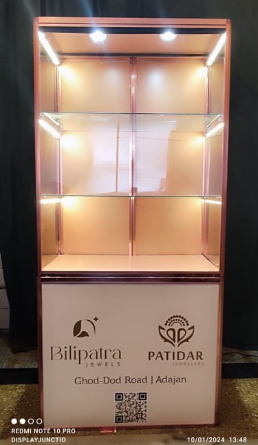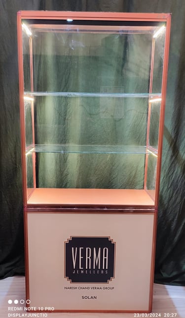 Unique New Folding Jewellery Display Cabinet is one of it kind product launched with focus on Jewellers who organise exhibition for sales or take part in Trade Fair and B2B exhibitions. Its innovative and unique design makes it easy to transport and install in minutes for use, without hassle or requiring a technician or a carpenter. You can use this Folding Jewellery Backdrop Display Cabinet over and over again due to its durable construction with mostly aluminium, acrylic and or shatter resistance toughened glass provided by us.