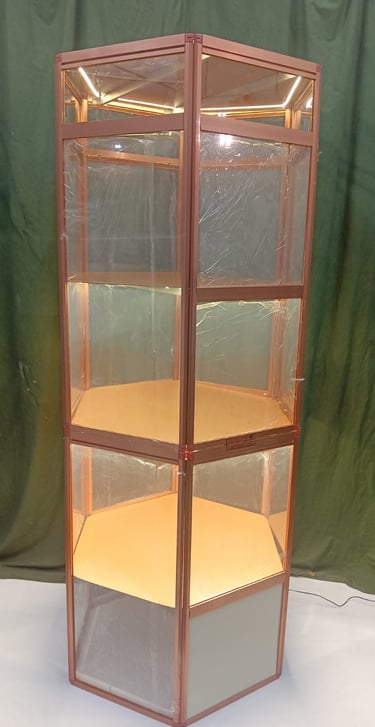 Folding Hexagonal Towers is a unique and exquisite display solution for Jewelry Shows, offering a captivating way to present breathtaking pieces, enhancing their allure and helping to attract more attention from potential customers. This innovative design not only highlights the beauty of each jewelry item but also adds a modern touch to any retail environment, making it an essential component for any jewelry display strategy.